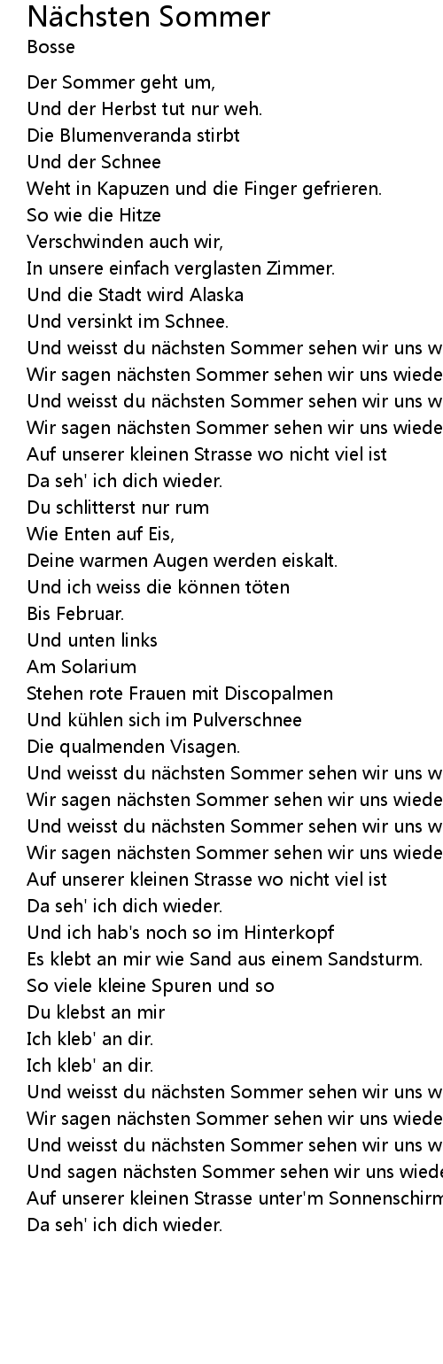 | Und weisst du n chsten Sommer sehen wir uns wieder, | |