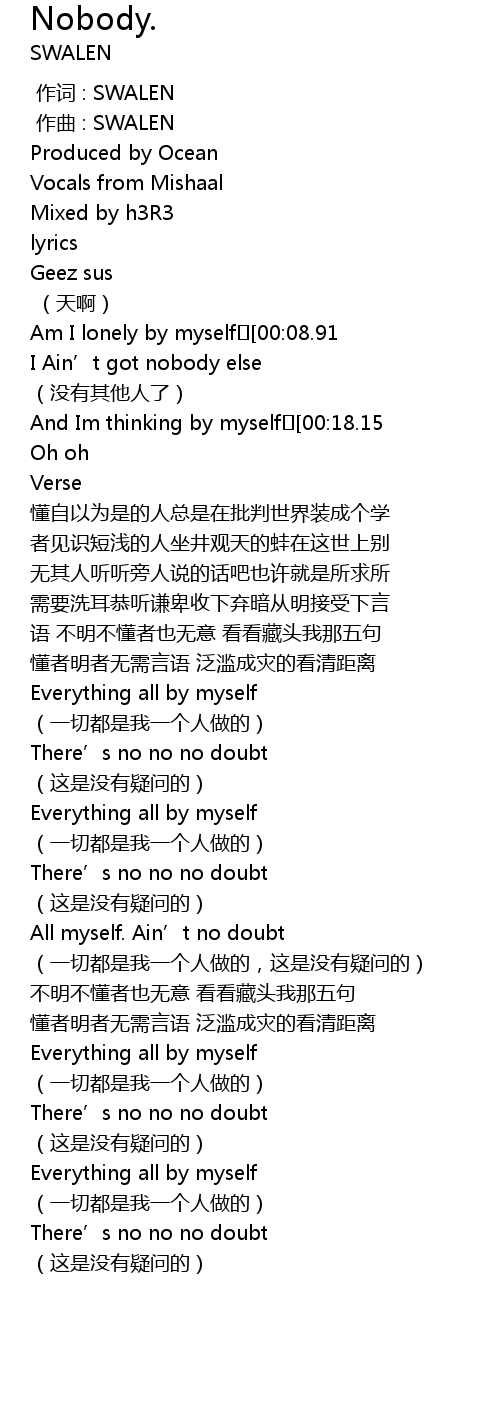 | [00:58.56] | All myself. Ain’t no doubt |