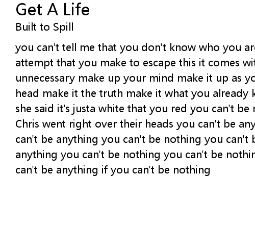 | you can't tell me that you don't know who you are it's there from the start any attempt that you make to escape this it comes with the package useless and unnecessary make up your mind make it up as you go unthink the things in your head make it the truth make it what you already know she said that's not what she said it's justa white that you red you can't be nothing | |