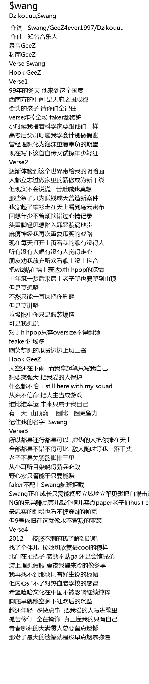 | [00:00.000] | 作词 : Swang/GeeZ4ever1997/Dzikouuu |