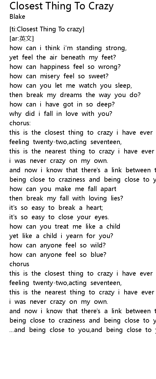 | [01:08.57] | this is the closest thing to crazy i have ever been |