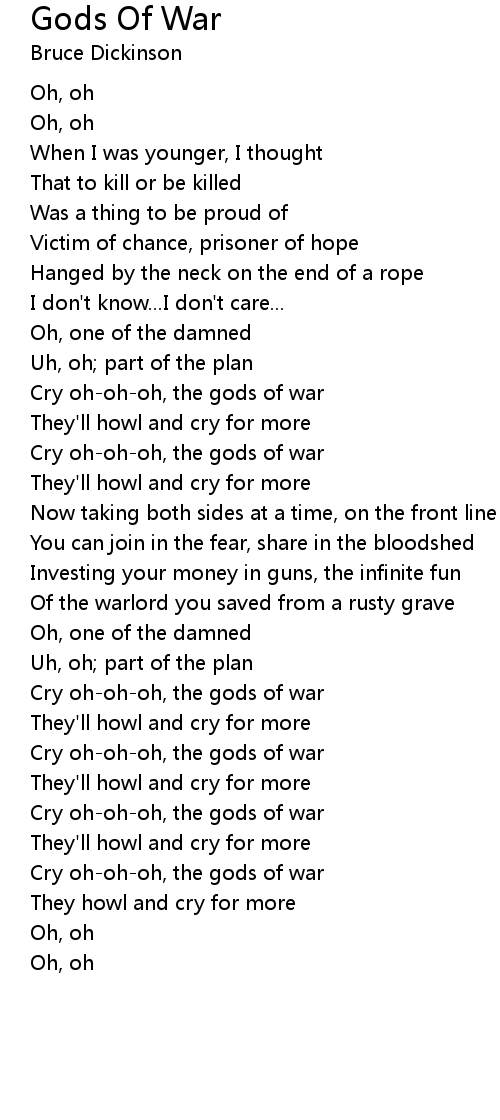 Cry oh-oh-oh, the gods of war |