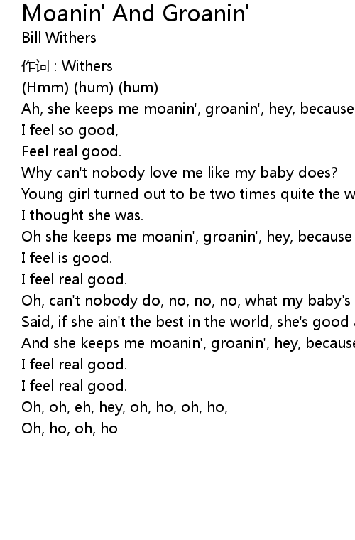 | Oh she keeps me moanin', groanin', hey, because | |