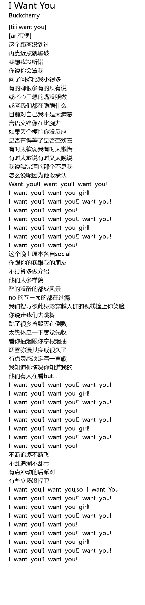 | [01:35.223] | I want you!I want you!I want you! |