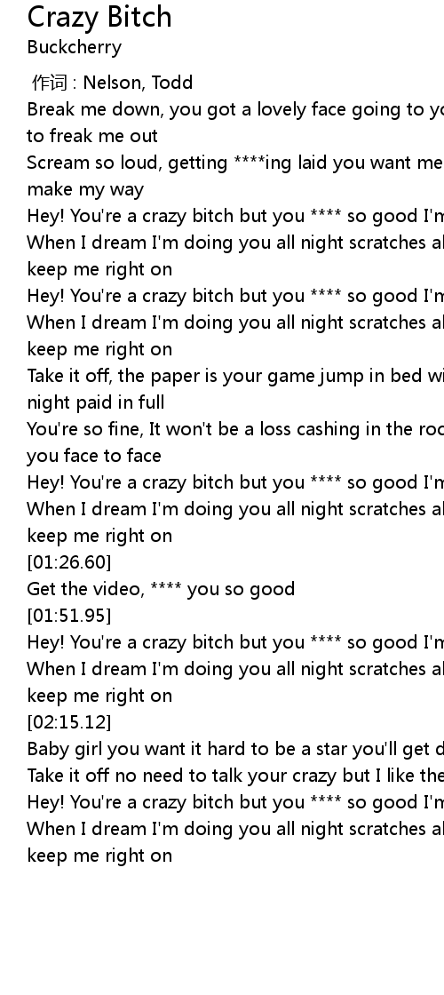 | [00:41.17] | Hey! You're a crazy bitch but you **** so good I'm on top of it |