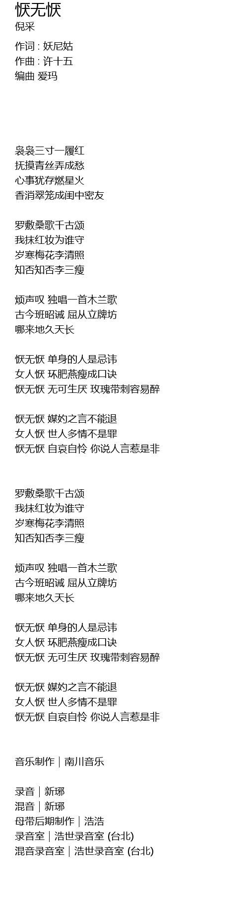 | 恹无恹 自哀自怜 你说人言惹是非 | |
