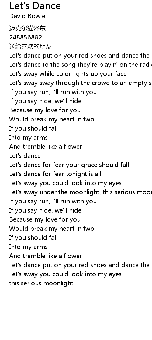 | Let' s dance put on your red shoes and dance the blues | |