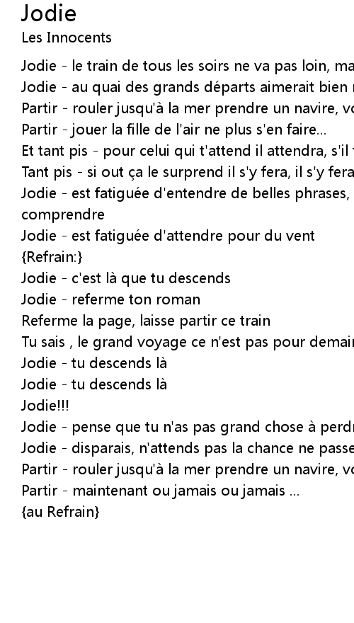 | Jodie disparais, n' attends pas la chance ne passe jamais deux fois | |