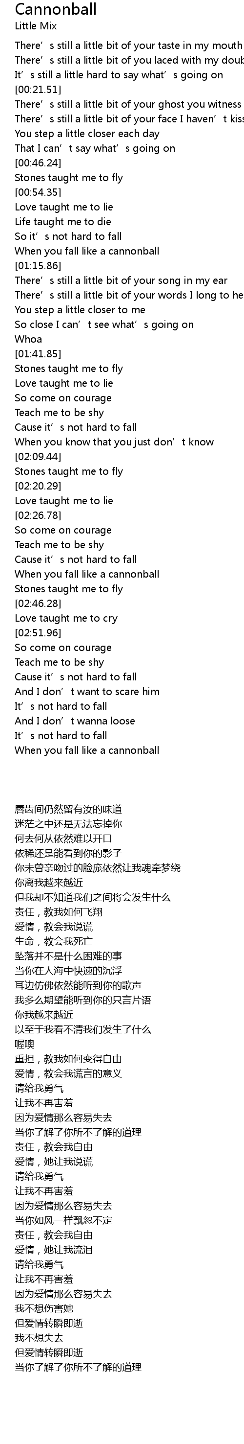 | [02:37.49] | When you fall like a cannonball |