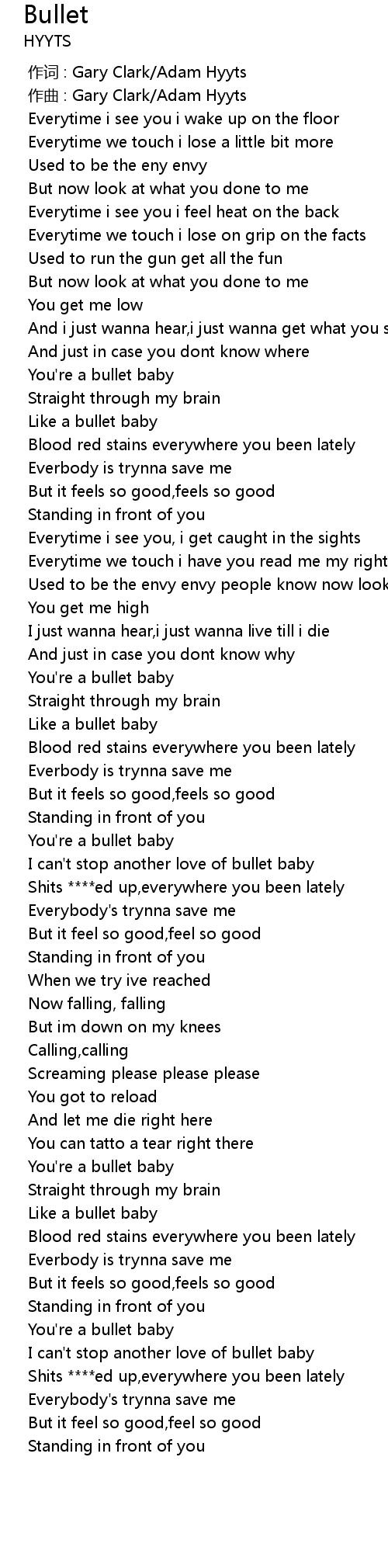 | [02:24.997] | I can't stop another love of bullet baby |
