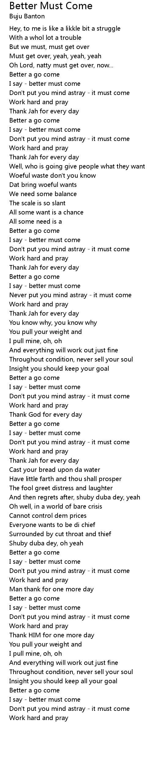 I say - better must come |