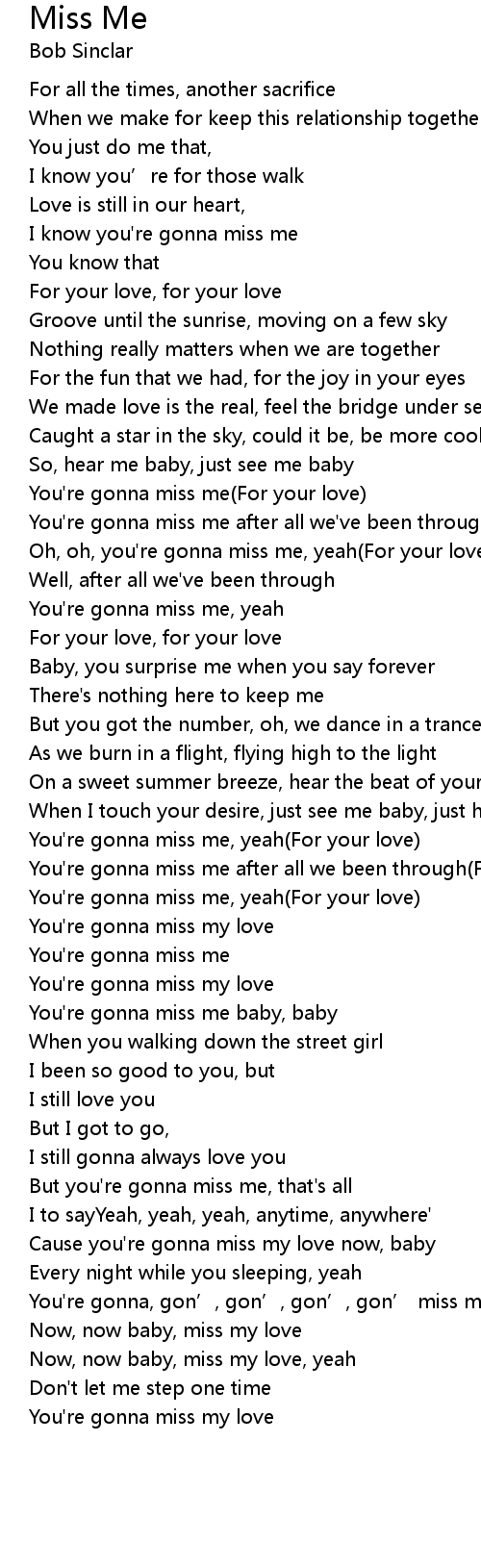| Oh, oh, you're gonna miss me, yeah(For your love) | |