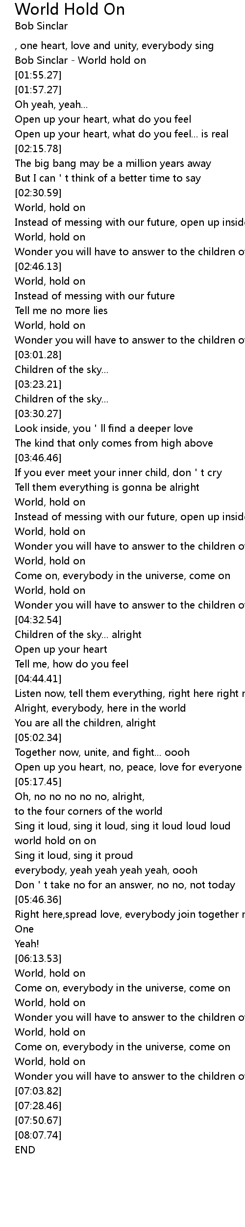 | [00:00.00] | Bob Sinclar - World hold on |
