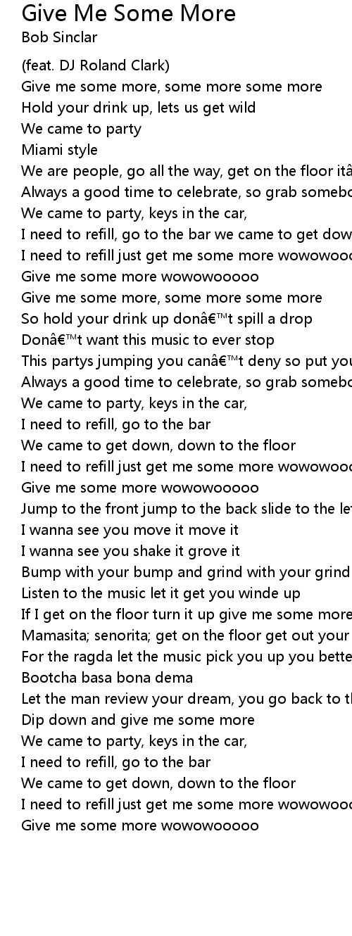 | Give me some more, some more some more | |
