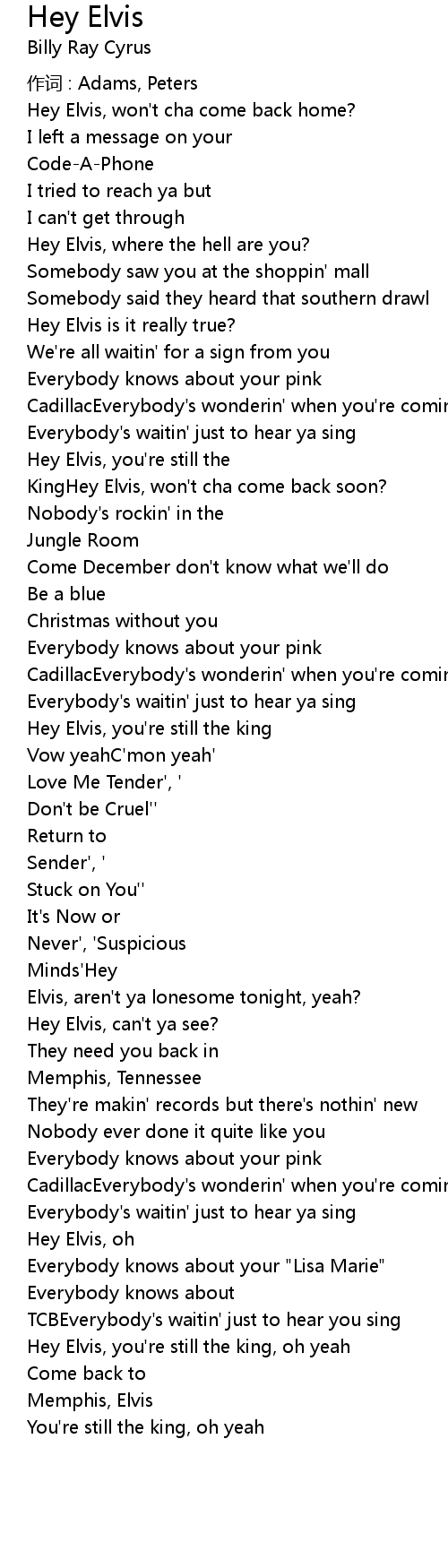 | Elvis, aren' t ya lonesome tonight, yeah? | |