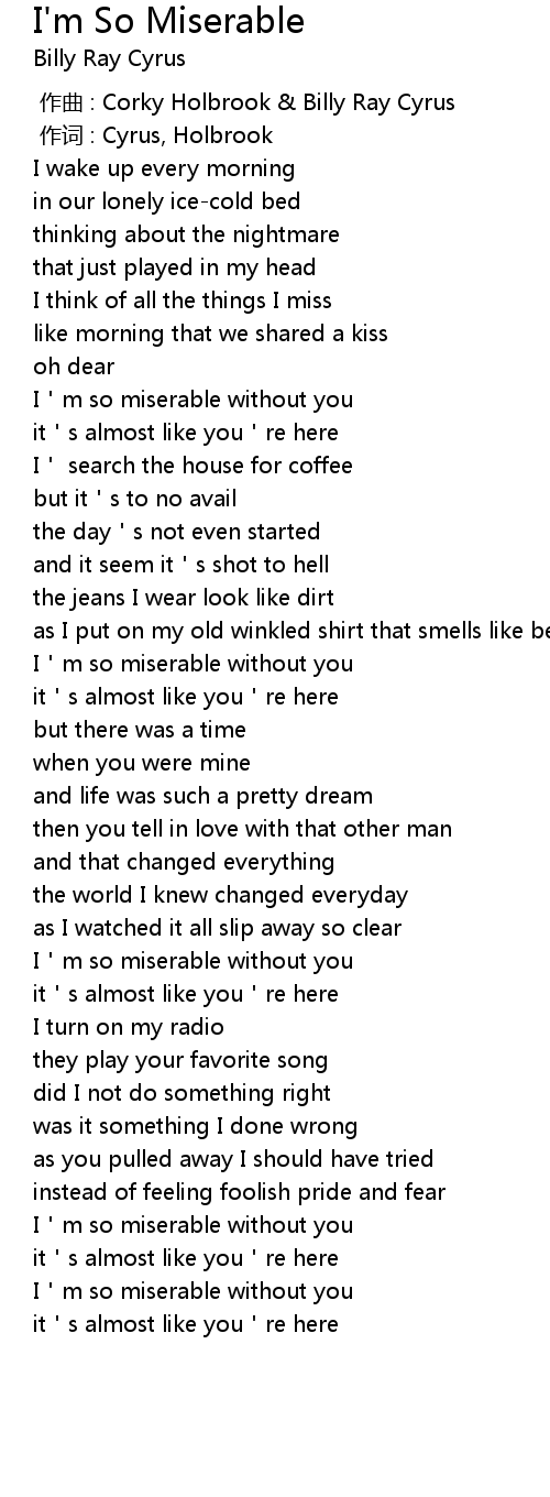 | [00:47.97] | I'm so miserable without you |