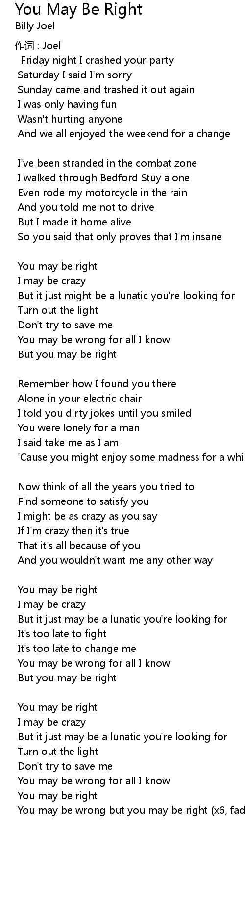 | Song | You May Be Right |