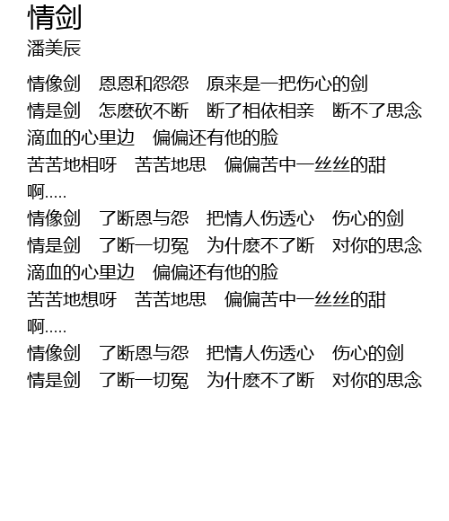 | [02:58.0] | 情像剑 了断恩与怨 把情人伤透心 伤心的剑 |