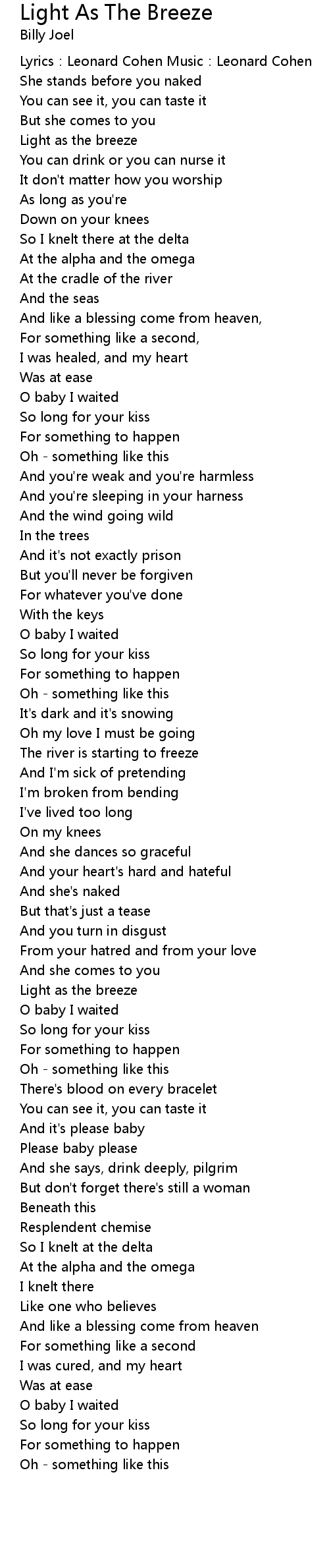 | Song | Light As The Breeze |