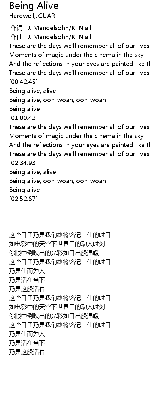 | [02:43.41] | Being alive, ooh-woah, ooh-woah |