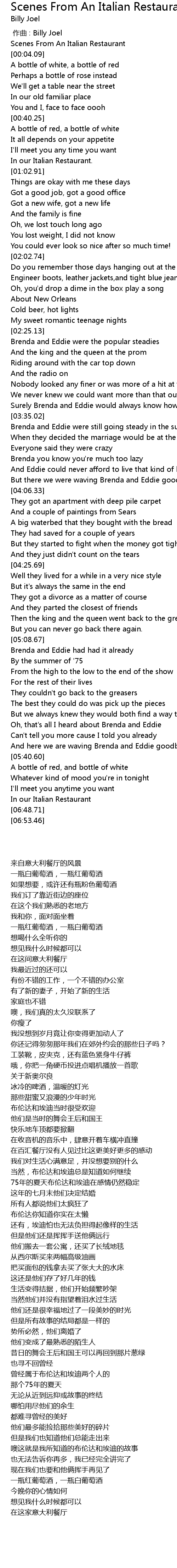 | [00:02.25] | Scenes From An Italian Restaurant |