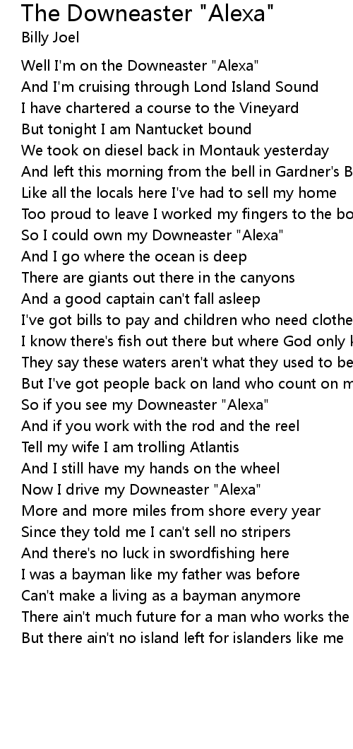 Well I'm on the Downeaster "Alexa" |