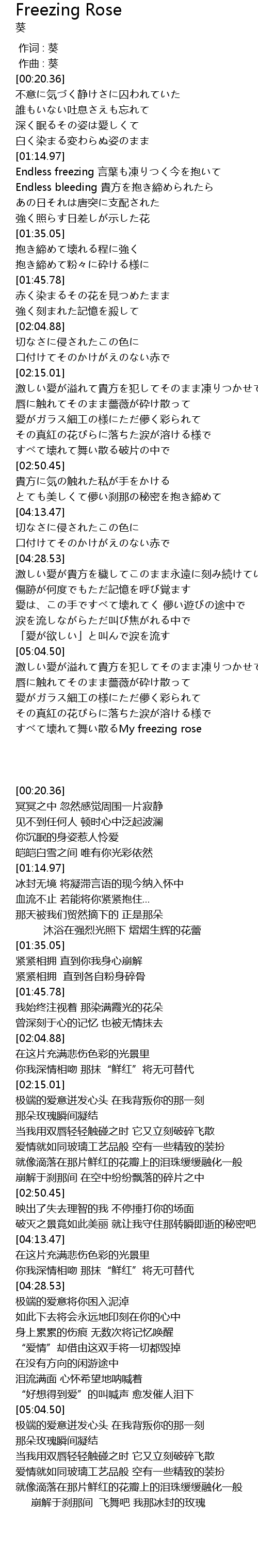 | [05:31.71] | すべて壊れて舞い散るMy freezing rose |