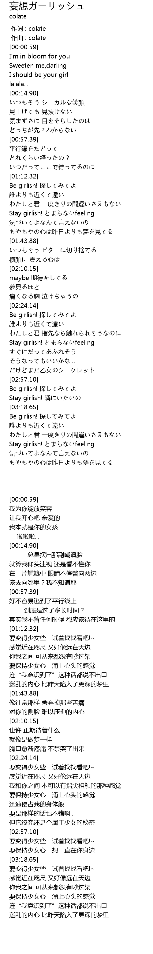 | [02:24.34] | Be girlish! 探してみてよ |