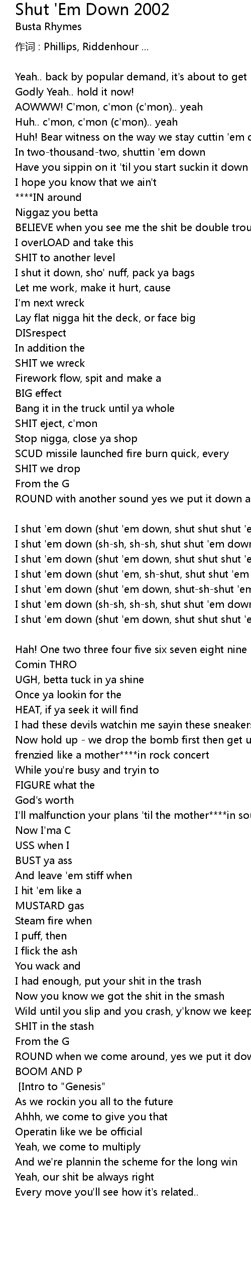 | I shut ' em down shut ' em down, shut shut ' em down Busta Rhymes | |