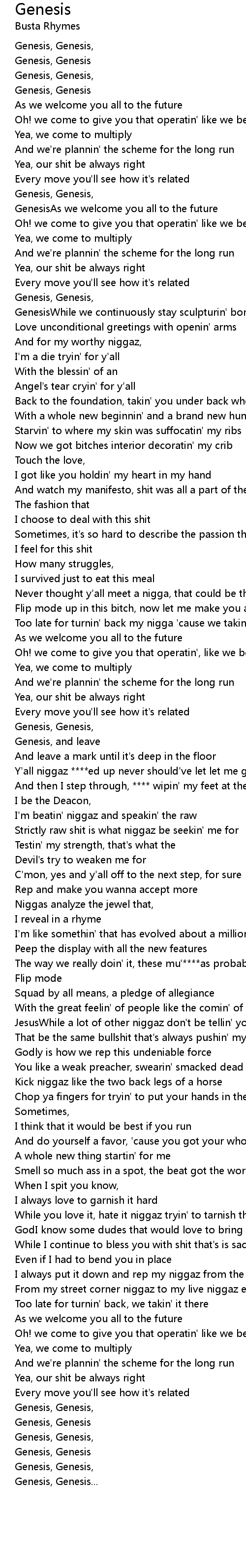 GenesisWhile we continuously stay sculpturin' bombs |