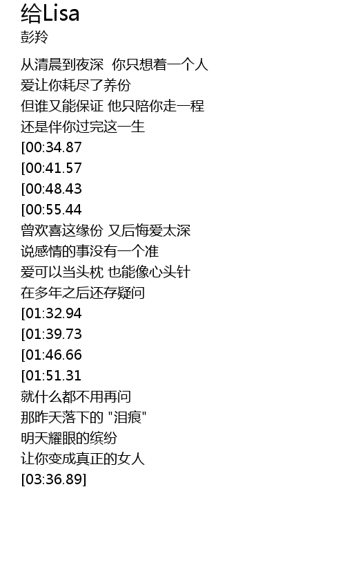 | [03:02.09][00:34.87] | oh! Lisa bie zai xiang na ge ren |