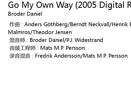 | [00:00.000] | 混音师 : Broder Daniel/P.J. Widestrand |