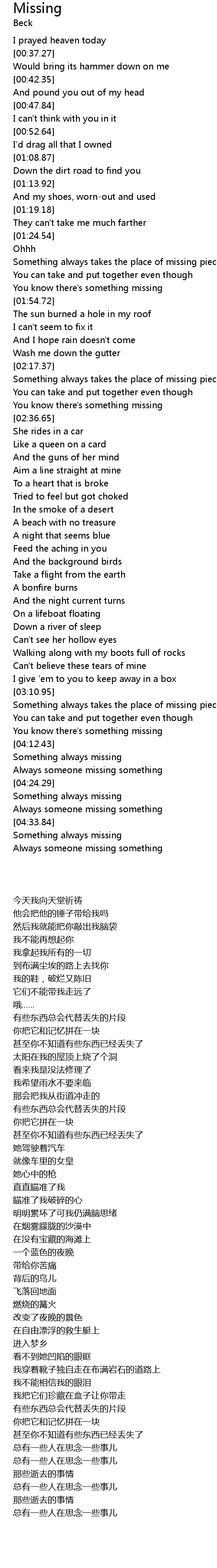 | [04:35.71] | Something always missing |