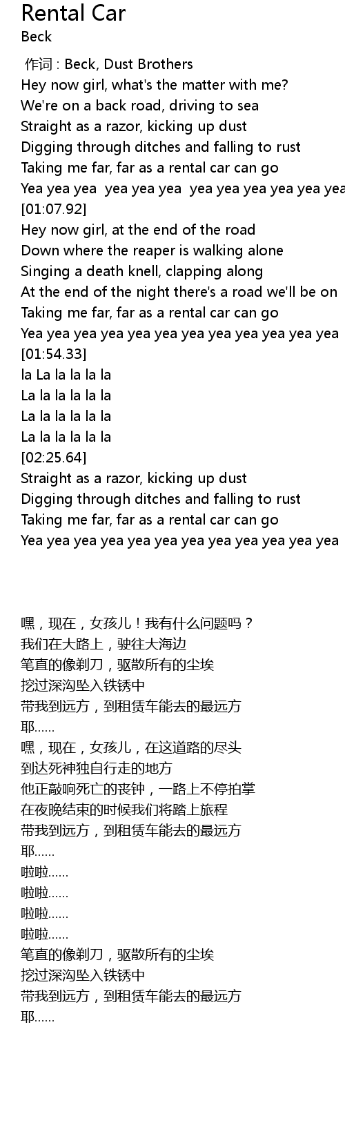 | [02:42.49] | Taking me far, far as a rental car can go |