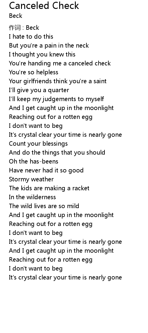 | Song | Canceled Check |