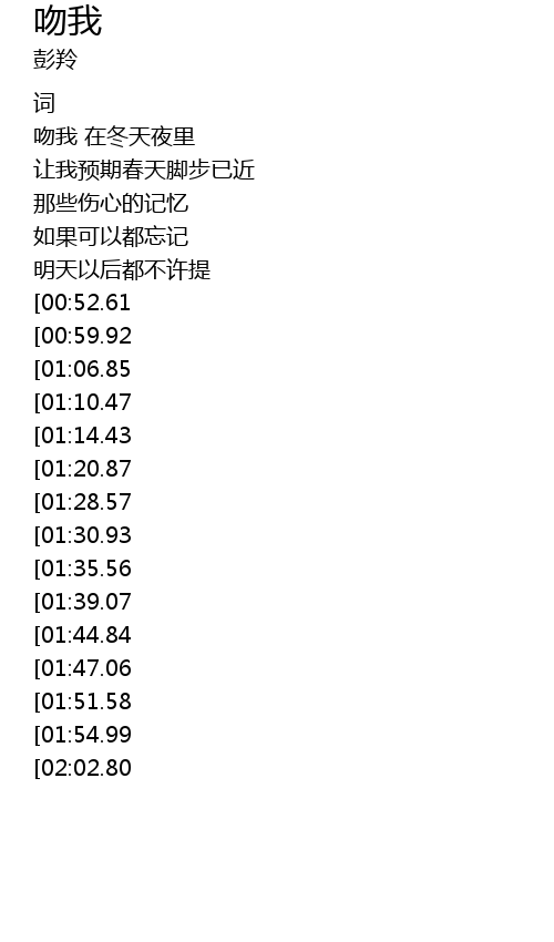 | [03:12.23][01:35.56] | 若他再次吻我 |
