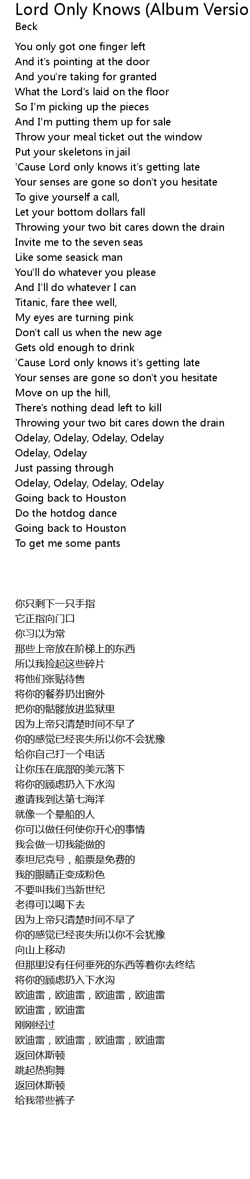 | [03:31.59] | Odelay, Odelay, Odelay, Odelay |