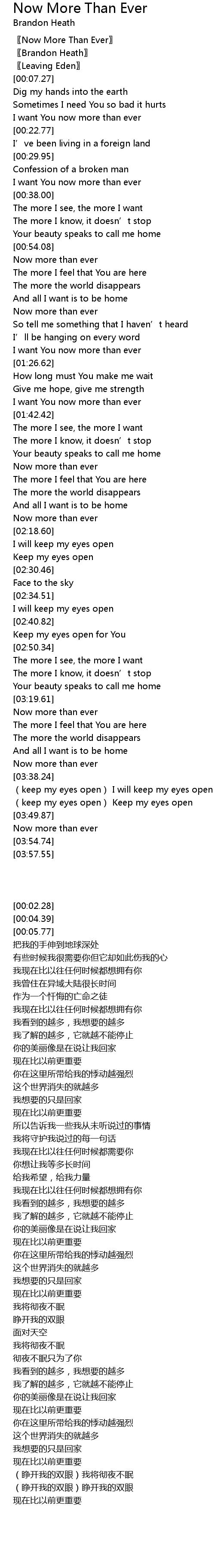 | [00:02.28] | Now More Than Ever |