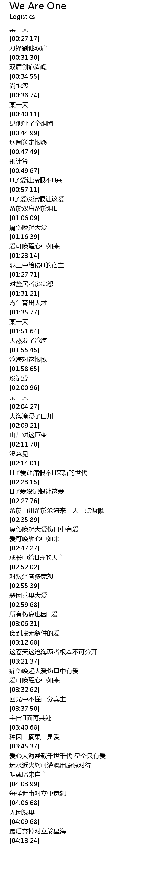 | [03:48.37] | 爱心大海盛载千世千代 星空只有爱 |