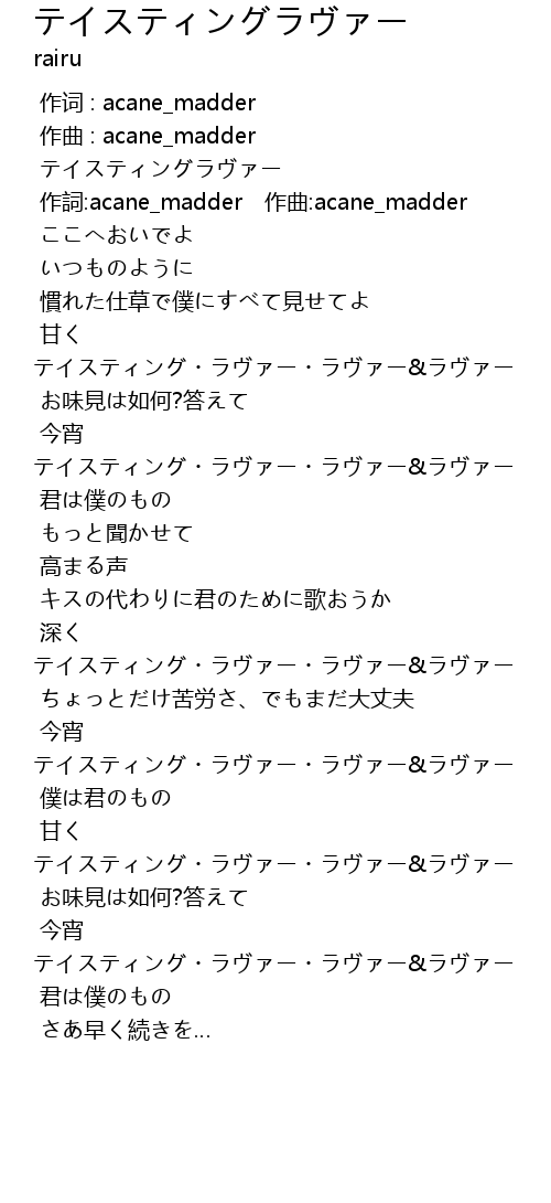| [00:02.96] | 作詞:acane_madder 作曲:acane_madder |