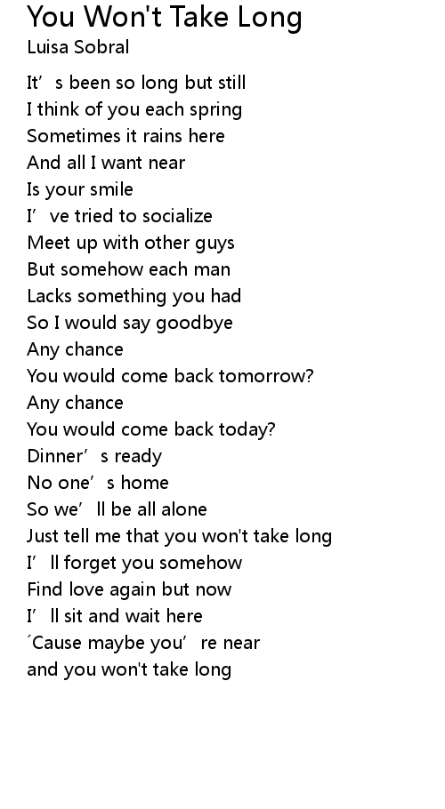 | Just tell me that you won't take long | |