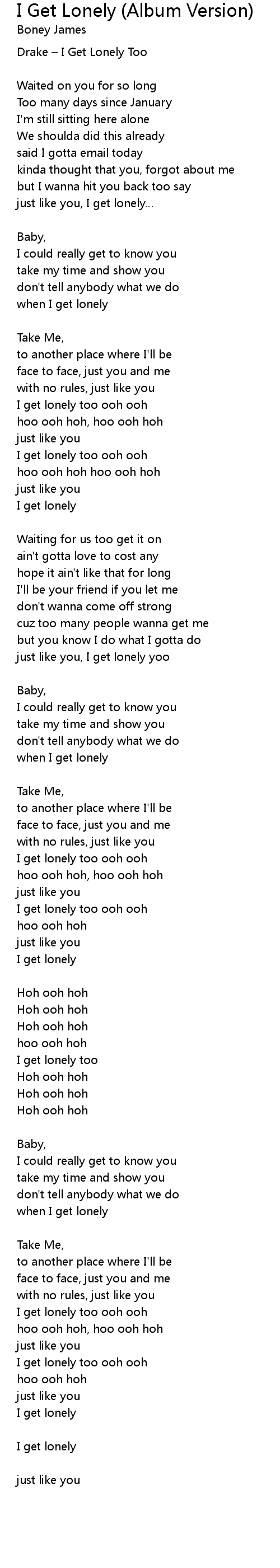 | I get lonely too ooh ooh | |