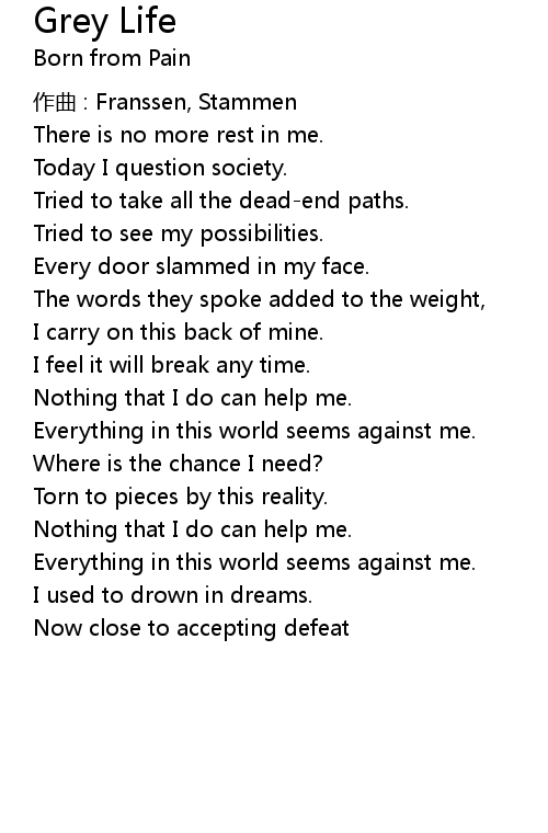 | Song | Grey Life |