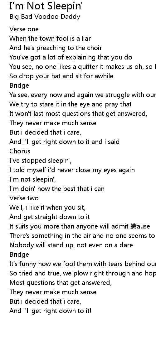 | I' m not sleepin', | |