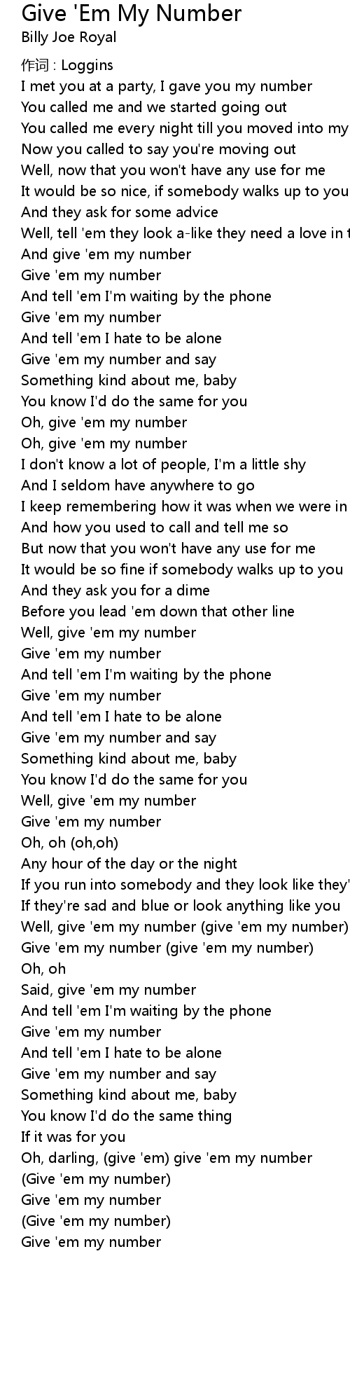 | Oh, darling, give ' em give ' em my number | |