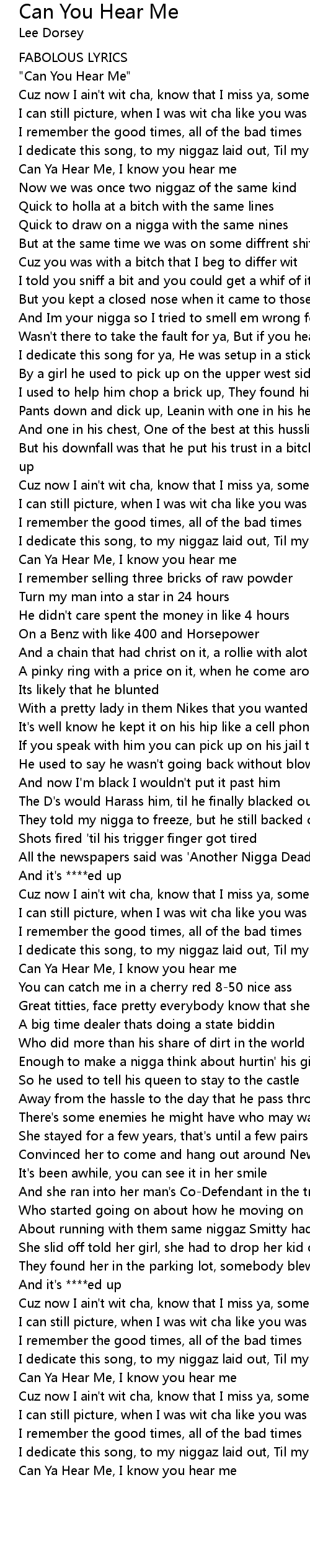 Cuz now I ain't wit cha, know that I miss ya, some how I carry on |