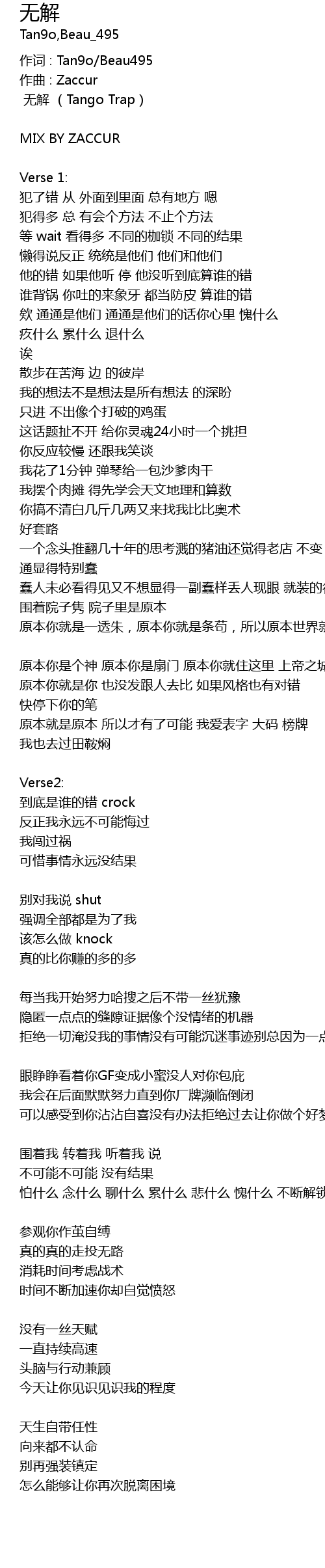 | 作词 : Tan9o/Beau495 | |