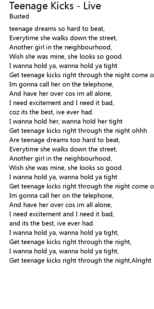 Get teenage kicks right through the night,Alright |