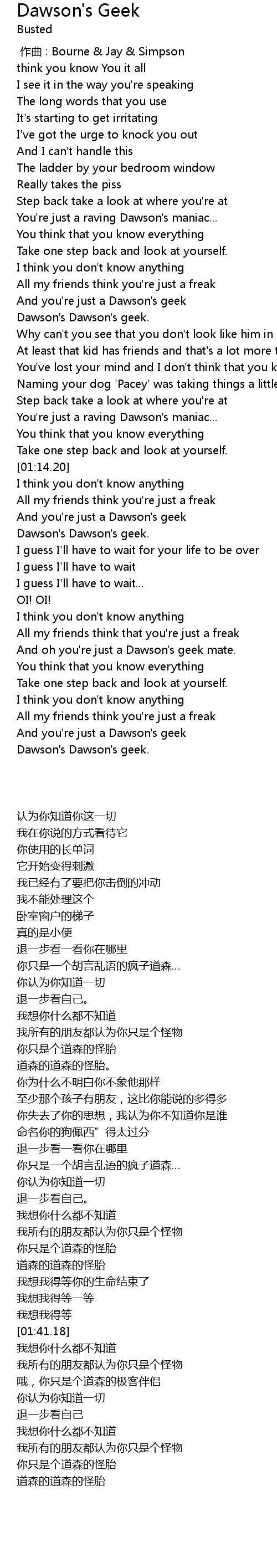 | [00:46.47] | Dawson' s Dawson' s geek. |
