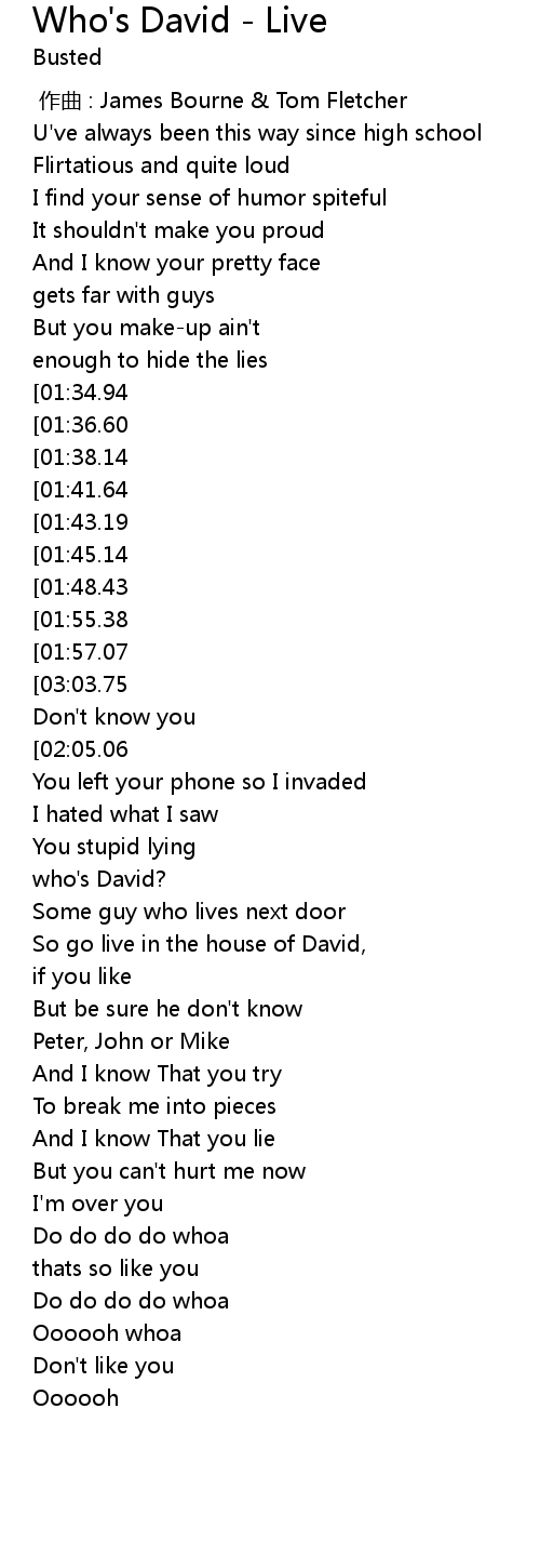 | Song | Who's David - Live |